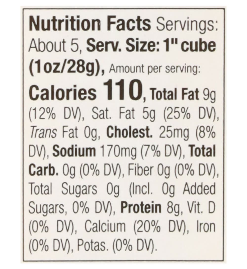 Pasteurized Milk, Cheese Cultures, Salt, Enzymes Contains: Milk
