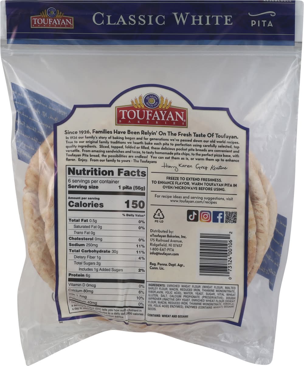 Toufayan Hearth Baked Pita, Classic White (12 oz, 6 ct)