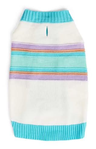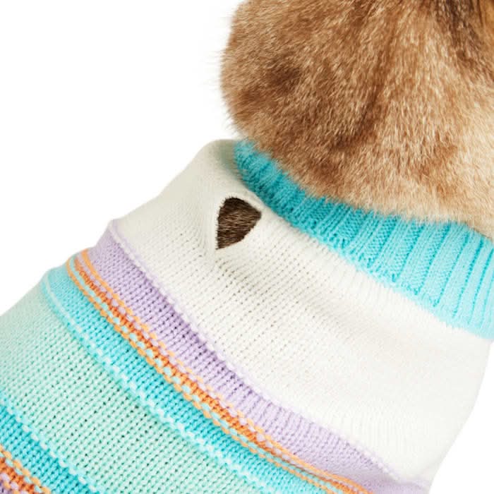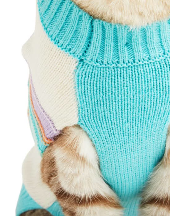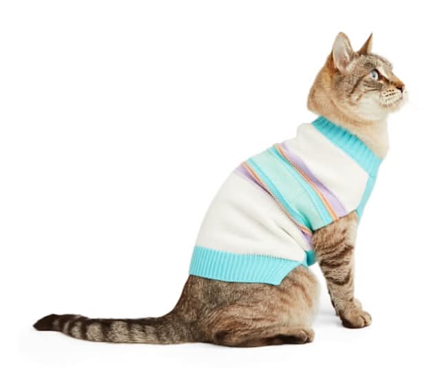 Youly's Striped Cat Sweater features a cute color block design that keeps kitty warm, cozy, and stylish on chilly spring mornings.