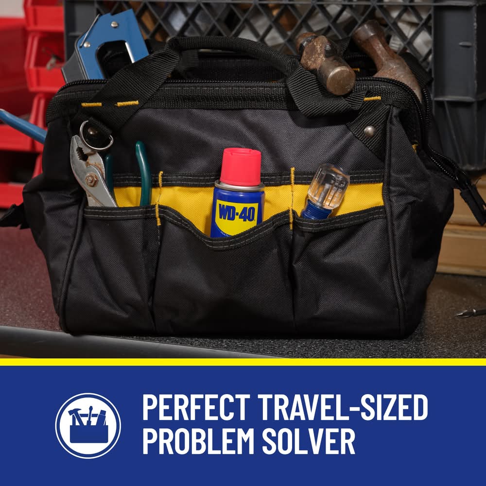 Handy convenient size perfect for on-the-go fits in tool belt, tool box, glove box, backpack or kitchen drawer drives out moisture and quickly dries out electrical systems to eliminate moisture-induced short circuits. Loosens rusted parts. Frees sticky mechanisms, loosens rust-to-metal bonds and helps release stuck, frozen or rusted metal parts. Protects against corrosion. Lubricates moving parts such as hinges, wheels, pulleys, rollers, chains, and gears.