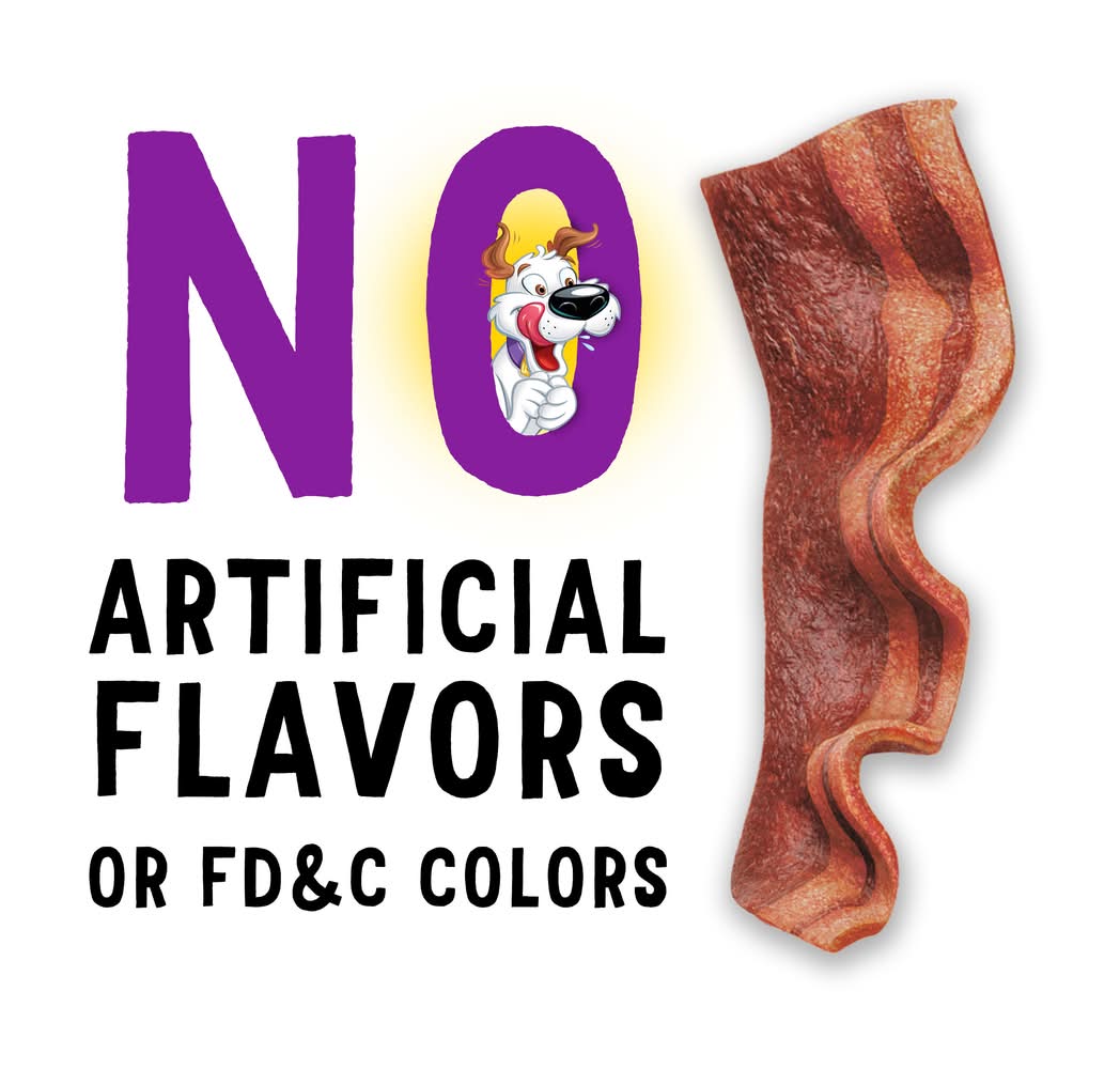 your dog dancing with joy for the strip that started it all when you Our irresistible treats feature real meat as the number 1 ingredient and offer the tantalizing taste of real bacon that'll make all your pal's doggie dreams come true. He's sure to go hog wild at the first sniff of goodness, and you can feel good giving him a mouthwatering treat made without any artificial flavors. Toss him a for a snack between meals, or tear these chewy strips into smaller pieces for the ultimate yummy reward. With the look and taste of real bacon, these flavored strips for dogs get tails wagging and tongues lolling just like Hamlet, Open up a dog treat pouch and listen for the sound of running paws. The rich aroma calls out to your dog with the promise of tail wagging flavor he just can't resist. Nestle Purina Pet Care Company, St. Louis