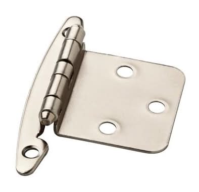 The Liberty 2-7/8 in. x 2-1/2 in. Satin Overlay Hinge without Spring is perfect for cabinet door mounting. Sturdy steel material ensures long product life. Easy-to-follow installation instructions are included. • Color: Satin nickel • Size: 2-7/8x2-1/2 in