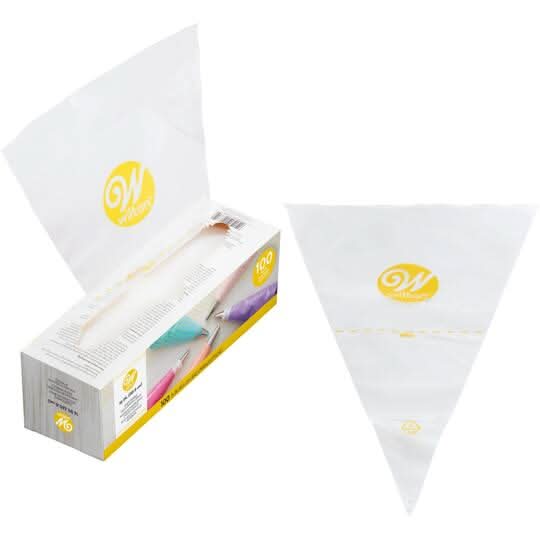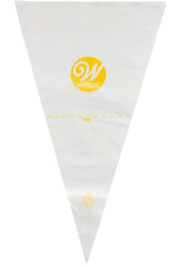 Buy the Wilton 16" Disposable Plastic Decorating Bags, 100ct. at Michaels. Use them to pipe buttercream, royal icing, meringue batter, even filling for deviled eggs. Clear. 16" (40.6 cm). 100 decorating bags. Can be used with or without a coupler. Can be cut to fit large piping tips. Throw away for easy cleanup. Wilton 16" Disposable Plastic Decorating Bags, 100ct. Size: 16 in