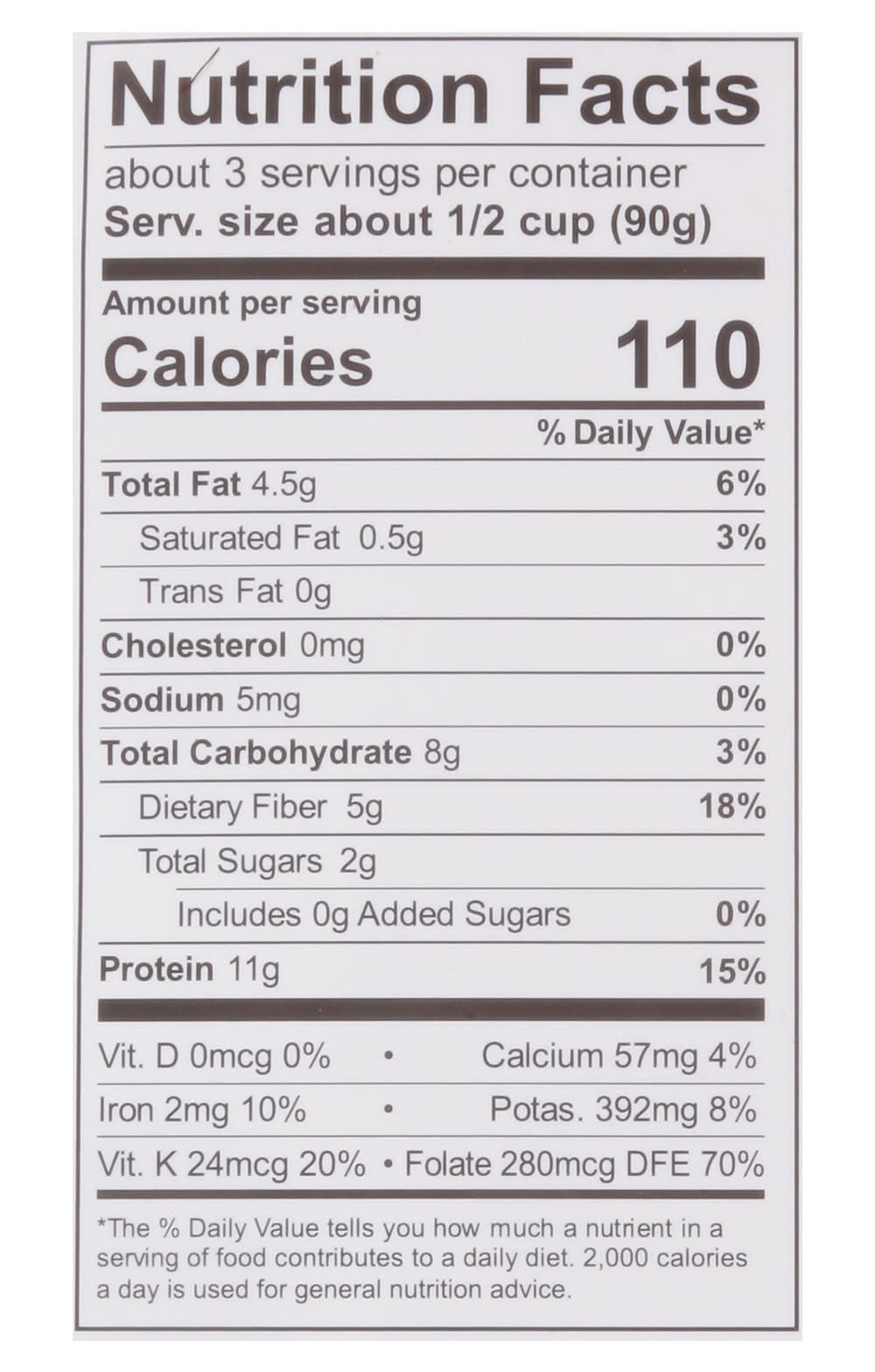 Serve Cold: Remove paper sleeve and film, lightly season with sea salt and enjoy. Serve Warm: Remove paper sleeve and poke a few holes in film to vent. Microwave for 1 minute on high (heating times may vary). Carefully remove film; contents and steam will be hot. Toss with a light sprinkle of sea salt and serve as an appetizer. Melissa's Organic Shelled Edamame may also be used in soups, stews, stir-fries, salads, dumplings and fritters. Perishable. Keep refrigerated.