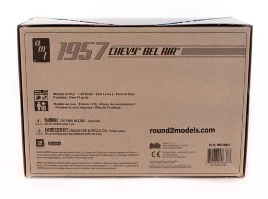 Buy the 1957 Chevy Bel Air Model Kit at Michaels. This 1:25 scale model of a 1957 Chevy Bel Air is molded in a classy aqua blue. The model comes with over 70 parts and includes a removable hood, Chevy 283 motor, detailed interior and an accurate chassis. 1957 Chevy Bel Air design . Molded-in blue and clear with chrome and black vinyl tires . Glue assembly, paint required . For ages 10 and up . 1957 Chevy Bel Air Model Kit