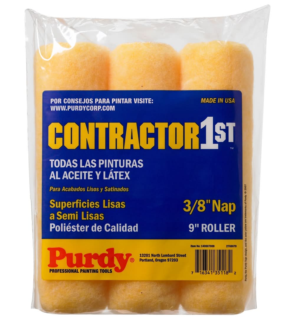 Purdy Contractor 1st Knit Fabric Paint Roller Cover, 9x3/8 in (3 ct)