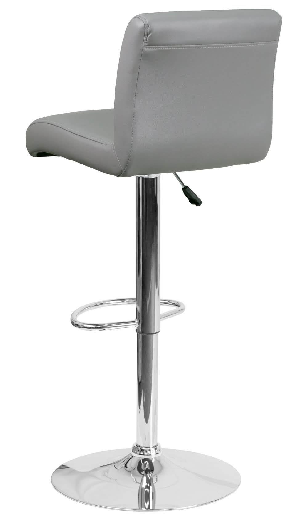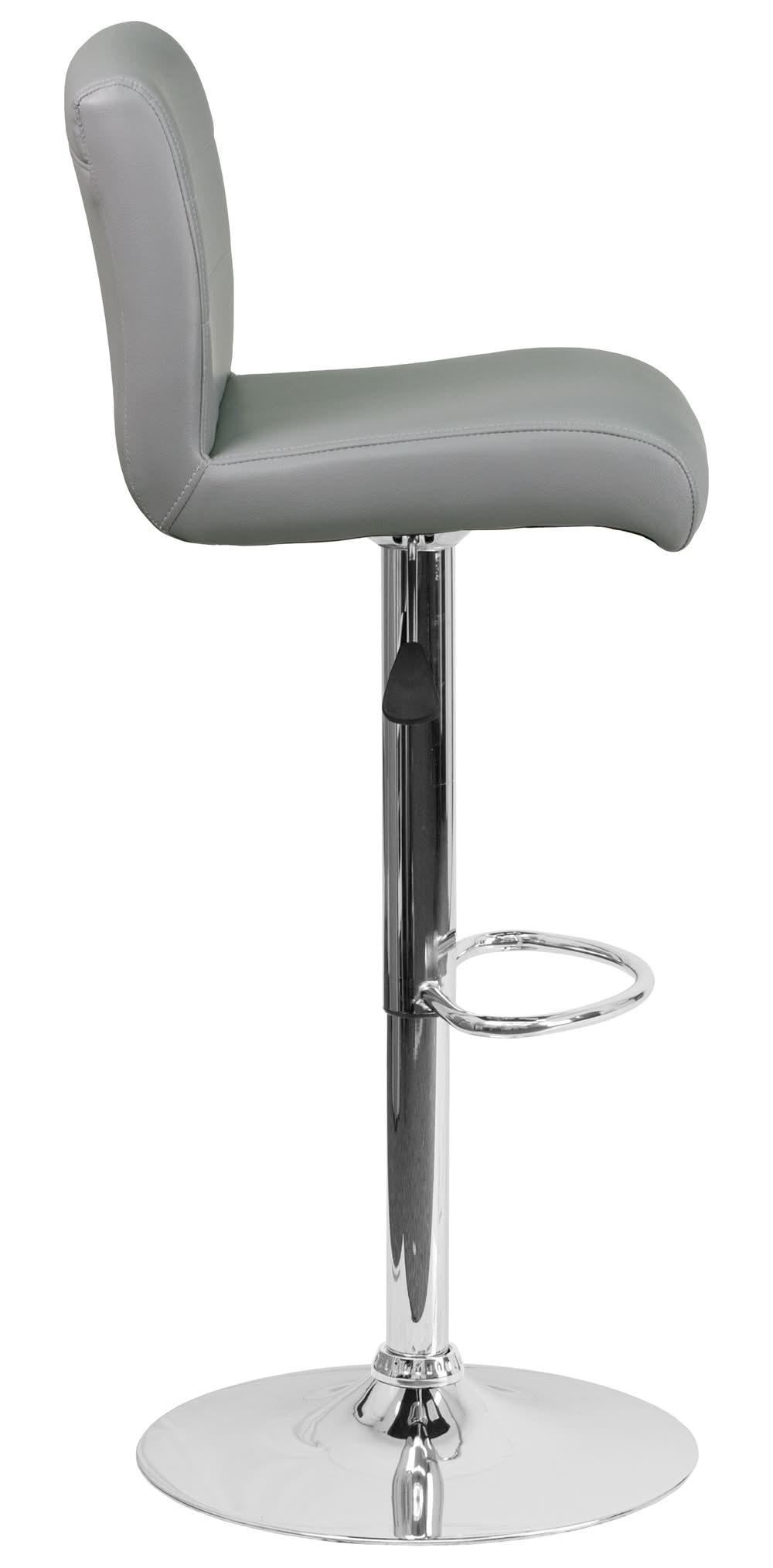 Flash Furniture Scott Contemporary Vinyl Chrome Base Rolled Seat Adjustable Height Barstool, Gray