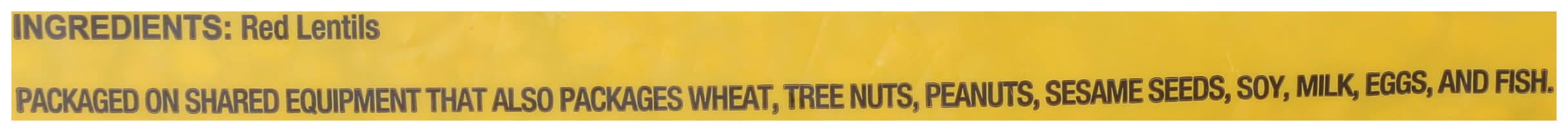 Red Lentils Contains: Wheat, Tree Nuts, Peanuts, Sesame, Soybeans, Milk, Eggs, Fish