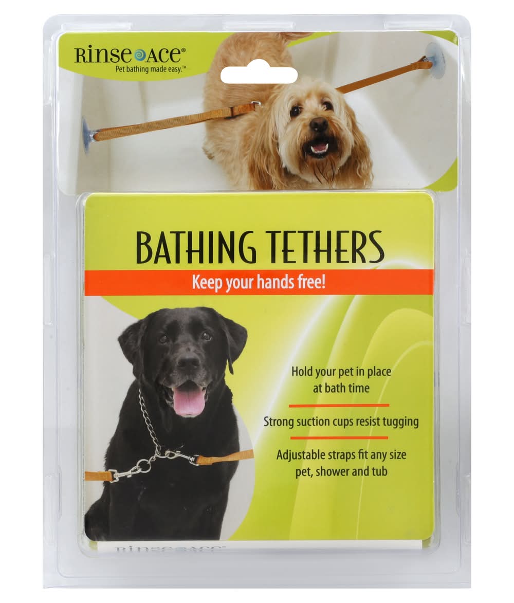 Attach suction cups to dry, smooth surface. Adjust strap length to allow pet to stand comfortably. Hook tethers to pet's collar. Remove suction cups by pulling release tabs.