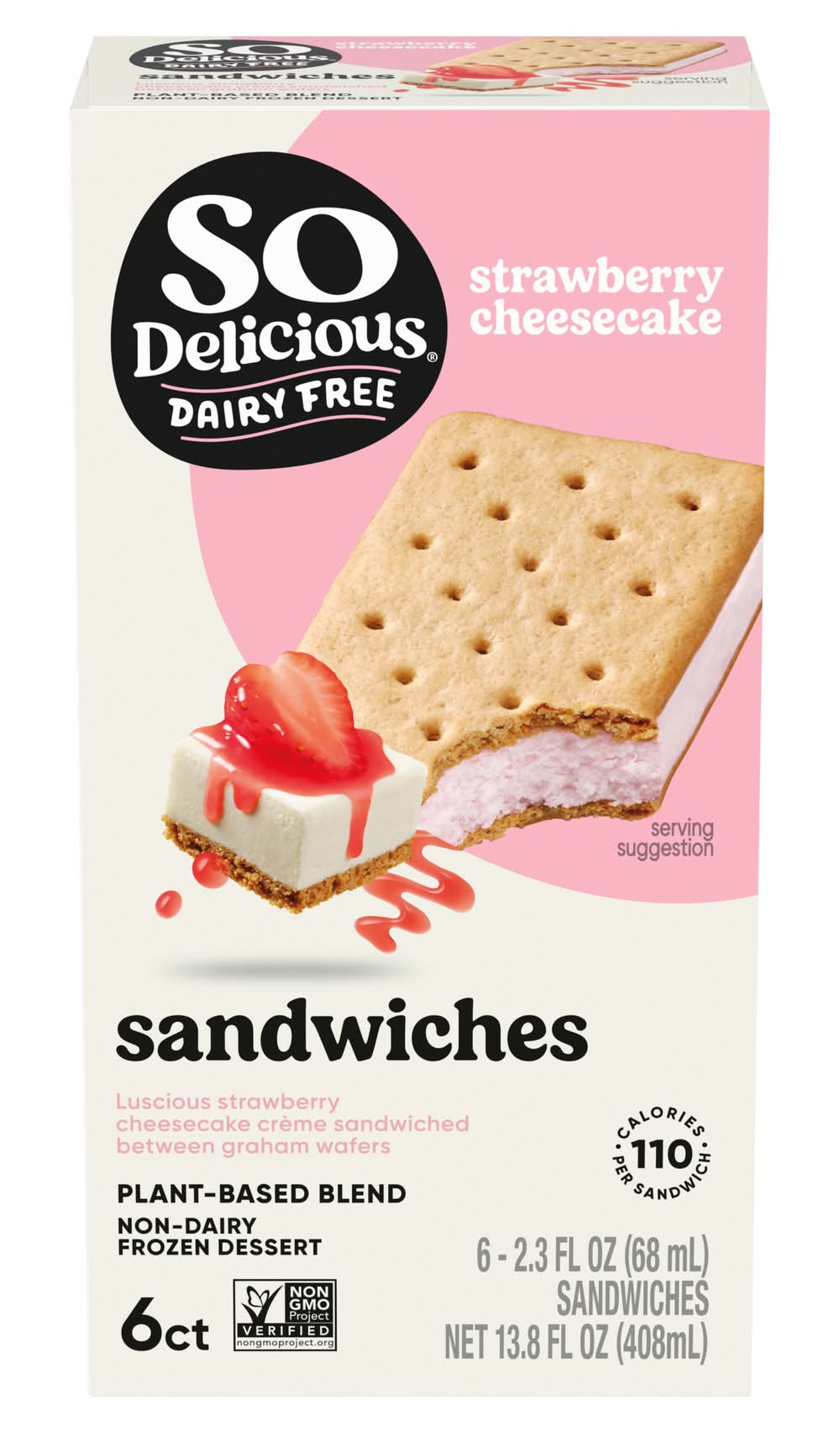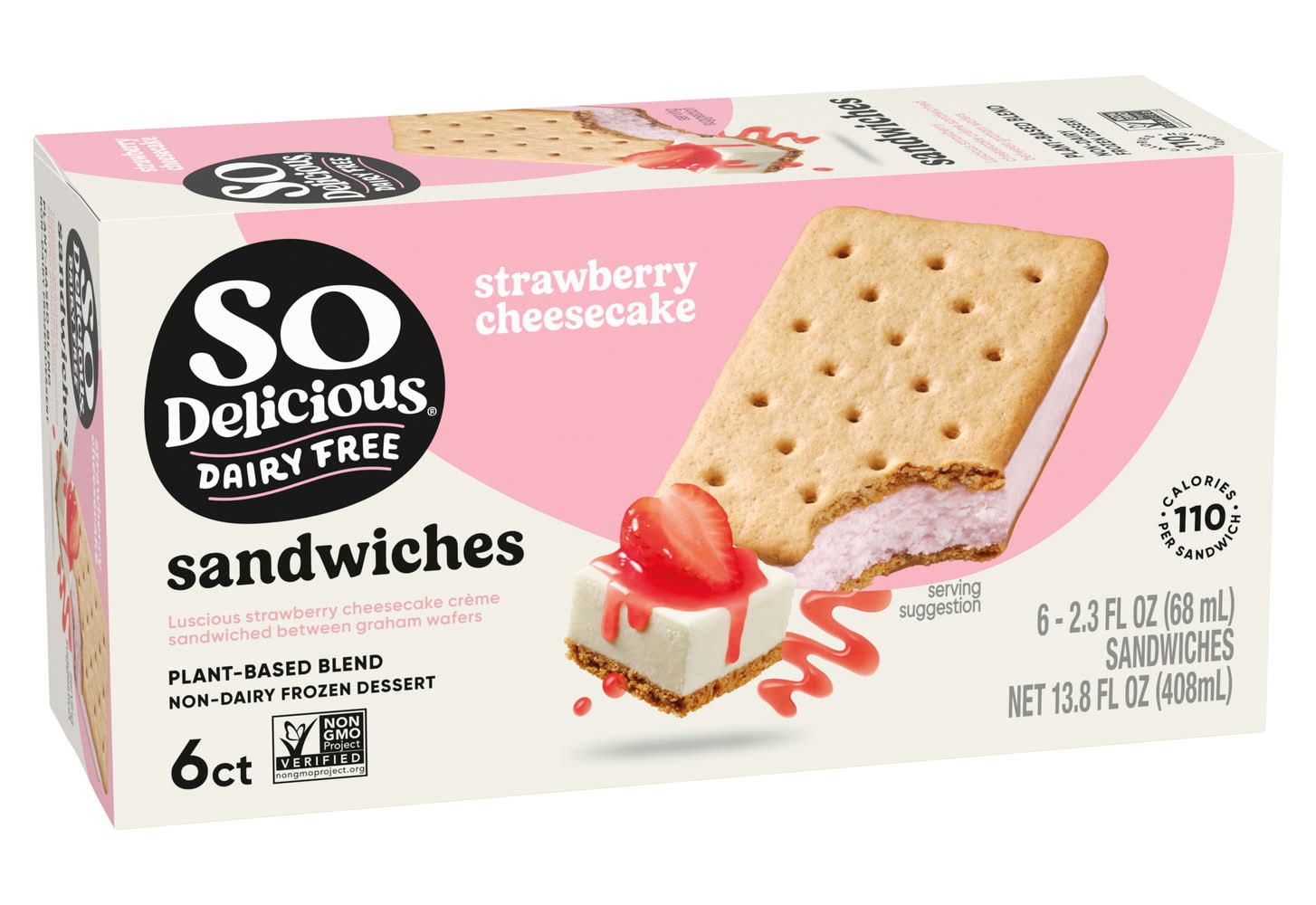 So Delicious Dairy Free Frozen Dessert Sandwiches, Strawberry Cheesecake (0.38 fl oz, 6 ct)