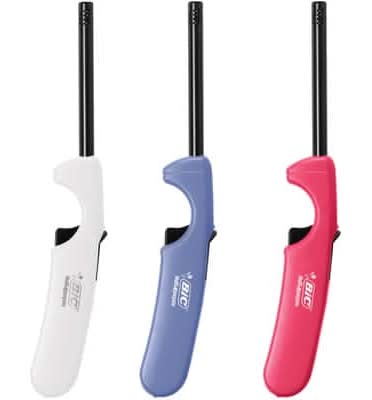 Buy the Assorted Bi C Multi-Purpose Candle Lighter, 1pc. at Michaels. Play it safe when lighting your favorite candles with this long lasting lighter from Bi C! With a long metal wire, you can keep your fingers flame free while keeping your room smelling nice. Can be used with candles, grills and more. Assorted colors will vary on purchase. Includes 1 lighter (color will vary) . Child resistant latching mechanism . Mechanism resets after each use. Candles, grills, etc. not included . Assorted BiC Multi-Purpose Candle Lighter, 1pc.