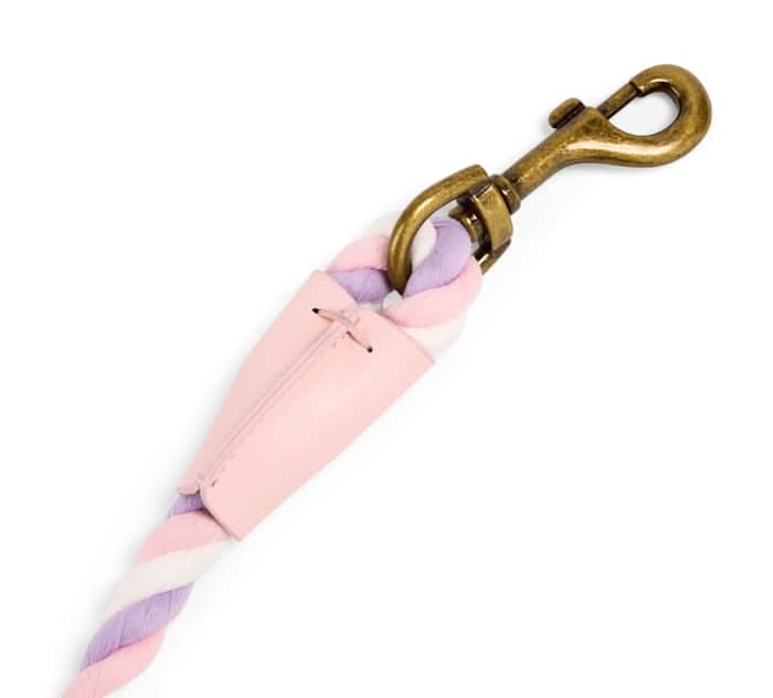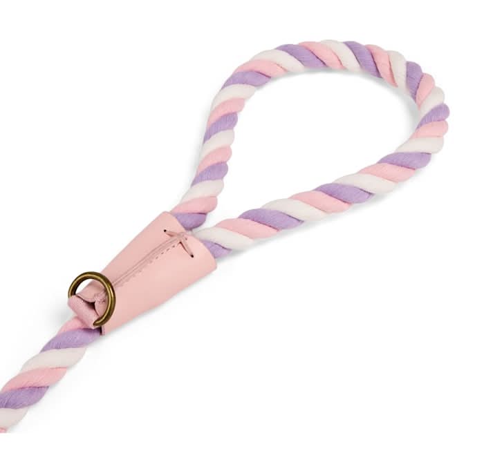 Step up your daily walks with some pops of color thanks to this Rope Dog Leash It features a harmonious medley of complementary hues that add a touch of elevated style to your on-the-go look, rounded out by thoughtful features like a D-ring and sturdy metal hardware.