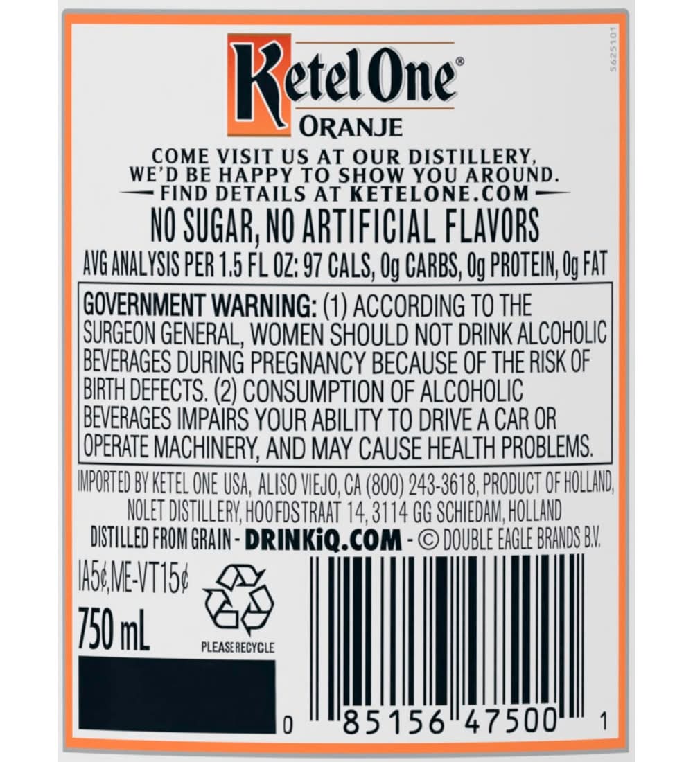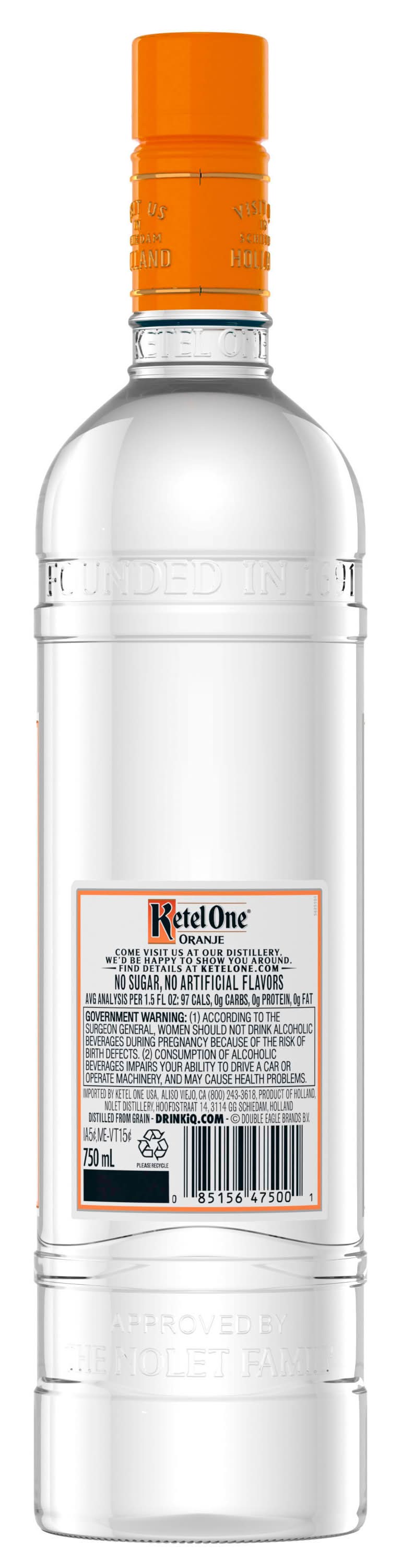 There's no substitute for natural flavor, that's why when we make Ketel One Oranje, we start by sourcing the world's finest fresh oranges and mandarins. Then, with the greatest care, we extract their flavor and infuse it into our vodka to deliver unmistakable notes of delicious ripe orange on the nose and the sweet citrus tang of juicy mandarin on the tongue. It's a unique combination truly worthy of the Nolet family name. Our 80 proof vodka is meticulously crafted using non-GMO grain for smoothness and is distilled in copper pot stills for a unique and refreshing tasting finish. This vodka is perfect for sipping on its own or added with your favorite cocktail. Simply fill a rocks glass with ice and add orange bitters, club soda and orange wheels for a delicious Ketel One Oranje Triple O. Includes one 80 proof 1 L bottle of Ketel One Oranje Flavored Vodka. Please drink responsibly. • Alcohol by volume: 40% • Packaging: Reusable