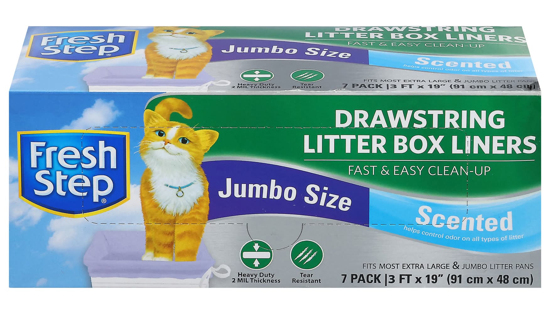 Litter Box Liners, Drawstring, Scented, Jumbo Size, 7 Pack