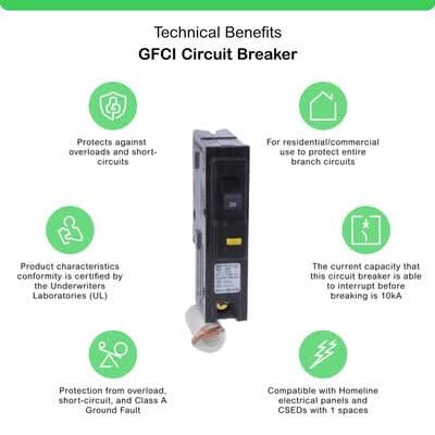 Square D Homeline Single-Pole Gfci Circuit Breaker 20 Amp