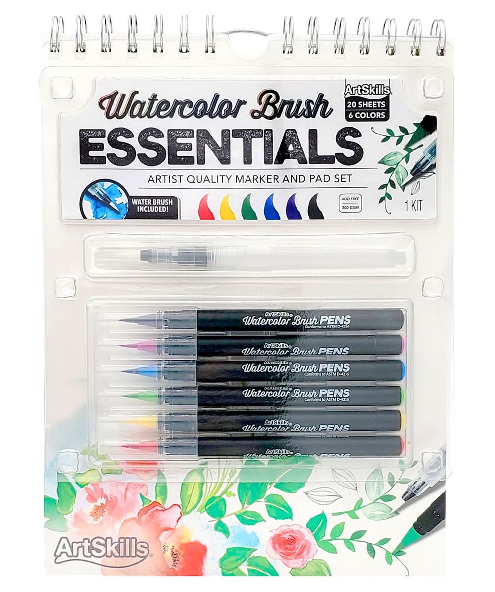 This artist quality watercolor brush kit includes everything you need! 6 watercolor brush pens, 20 sheets watercolor paper Perfect for creating your own masterpiece Artist color marker and pad set is travel friendly Color: Assorted
