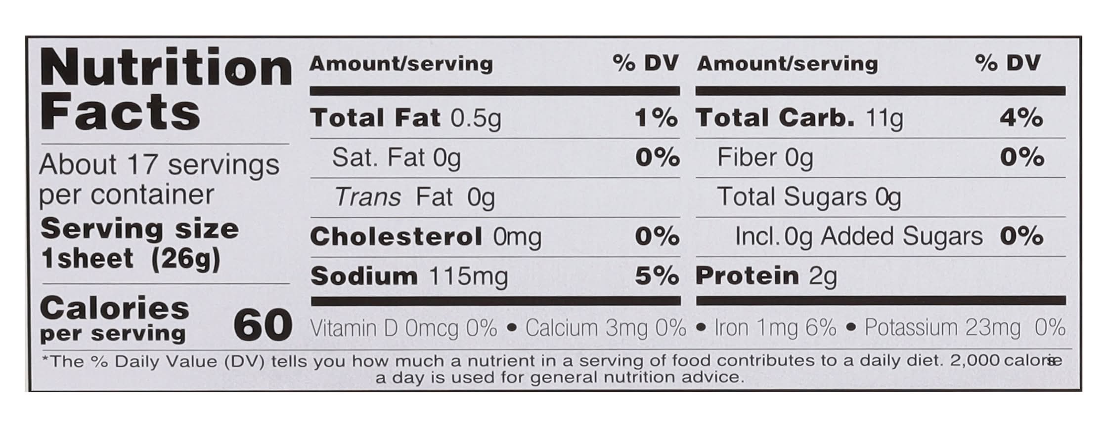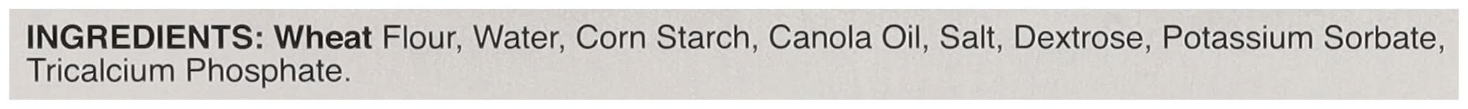 Flour, Water, Corn Starch, Canola Oil, Salt, Dextrose, Potassium Sorbate, Tricalcium Phosphate