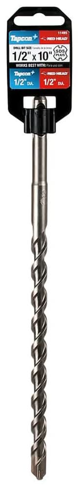 Tapcon/Red Head SDS bits are specifically designed for use with hammer drills, making them ideal for penetrating concrete and masonry. The carbide construction of Tapcon SDS drill bits allows for efficient, high-torque drilling in solid materials. When used in conjunction with Tapcon anchors, these bits ensure precise hole placement and optimal holding strength. Size: 0.5 in