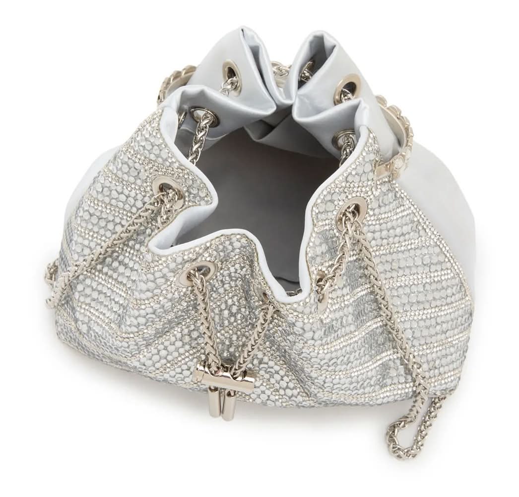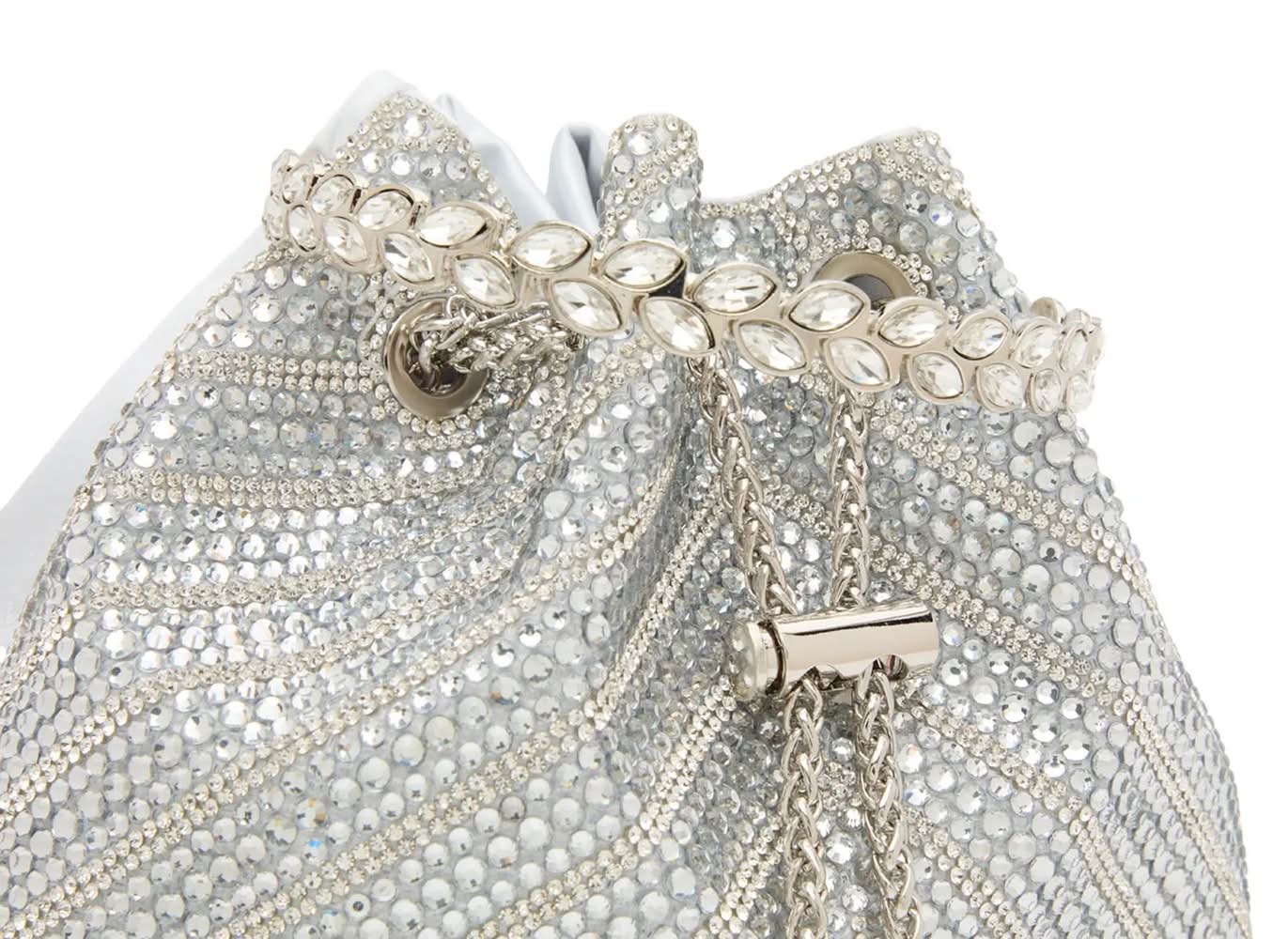 Show off trendy sophistication with the Lucky clutch from Kelly & Katie. Featuring a unique drawstring pouch silhouette adorned with rhinestones for a pop of shine to any evening look. • Color: Silver • Size: One Size • female