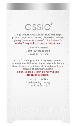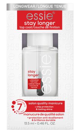Wish your mani would last forever? We’ll make it stay longer. essie stay longer premium longwear top coat with chip protection locks in color and provides lasting shine. The art of the manicure perfected, from America's nail salon expert: high performance essie top coats, base coats and treatments, for every detail of your manicure, the perfect compliment to any essie nail polish color. essie Stay Longer Top Coat- the ultimate longwear top coat that will keep your salon-quality manicure Size: 1 CT