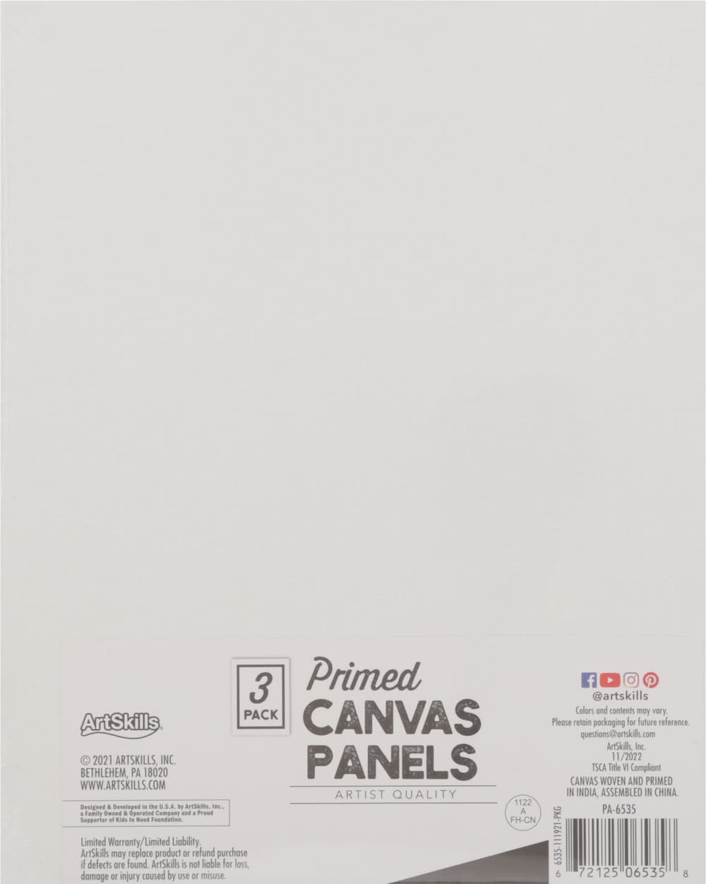 ArtSkills Primed Canvas Panels, 8" x 10" (9.6 oz, 3 ct)
