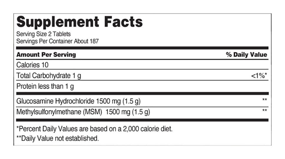 Glucosamine HCI, with MSM, 1500 mg, Tablets