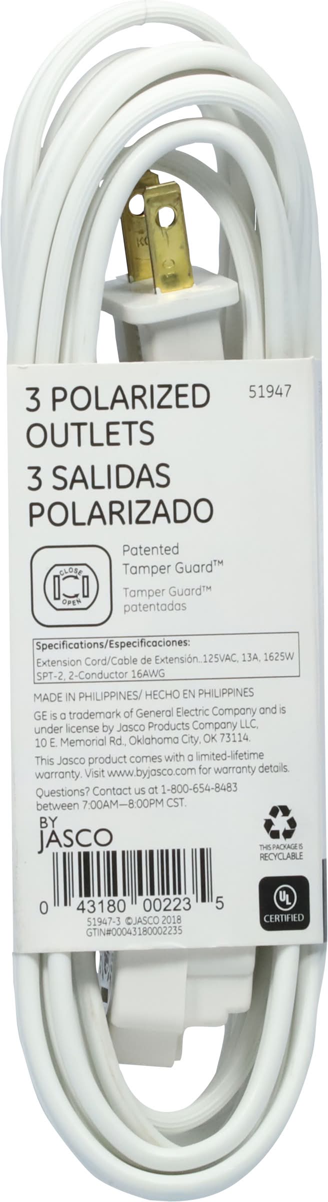 General Electric Wire 16-gau Indoor Extension Cord, White