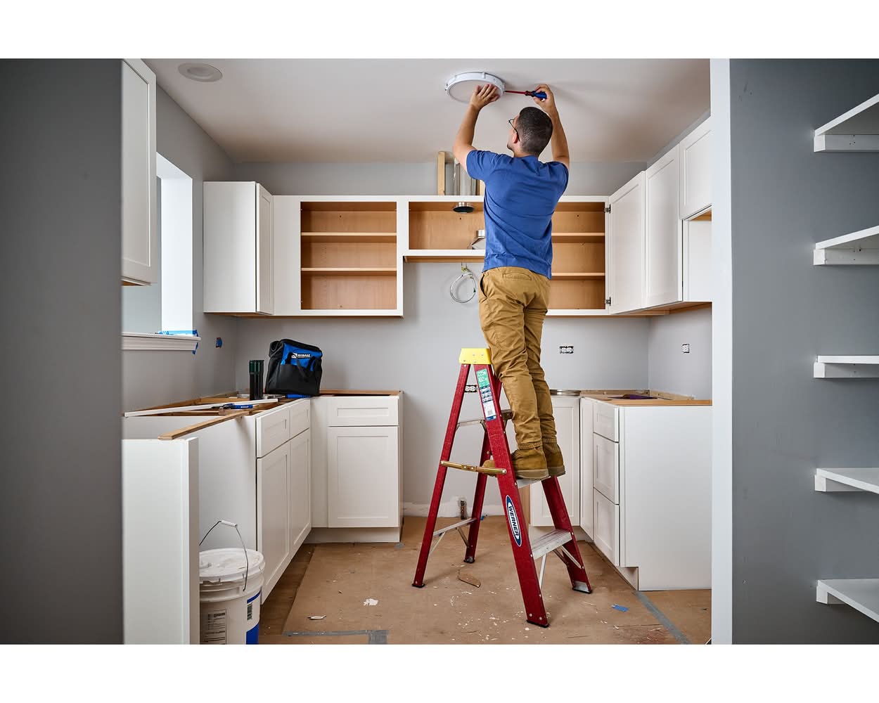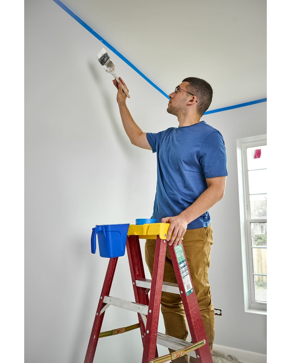Multi-functional top with tool and paint can holder keeps tools and supplies easily accessible to improve productivity. Slip-resistant Traction-Tred steps for safety. Lightweight, ideal for both commercial and DIY household painting jobs. Medium duty with a 225 lbs load capacity, you can tackle a variety of projects on the jobsite, or at home, like painting, hanging curtains and decorations, cleaning hard to reach places, renovations and more. Weather resistant and non-conductive fiberglass material makes it ideal for indoor and outdoor projects, as well as safely working around electricity. Top and bottom steps are braced for added security. External pinch-resistant spreaders provide stability. LOCKTOP ladder top safely holds 8 tools. Lock In accessory compatible for expanded productivity. Color: Red