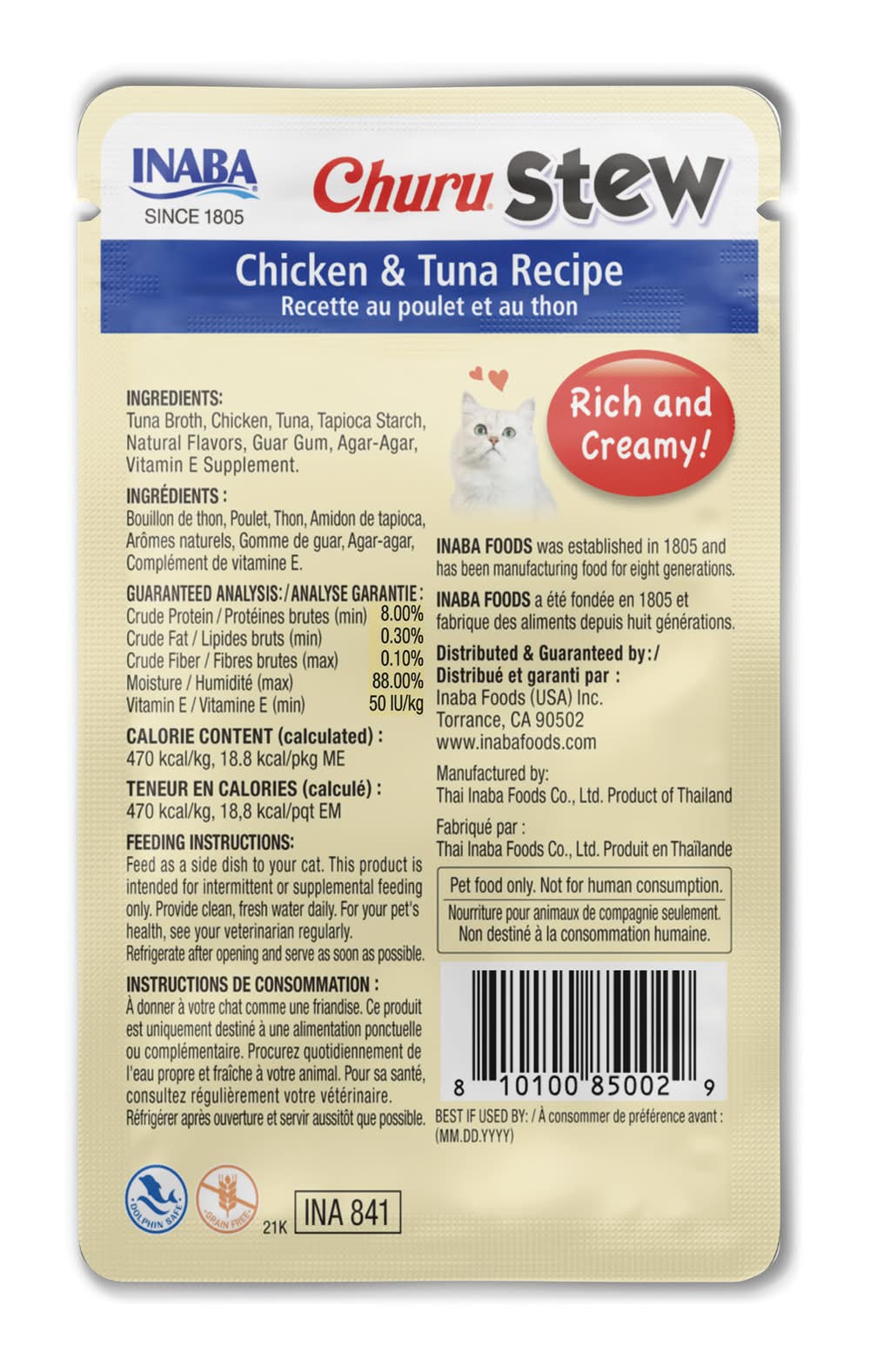 INABA Churu Stew Chicken & Tuna Recipe Cat Food Complement (1.4 oz)