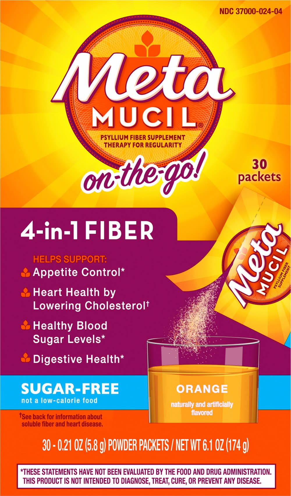 Usage of instructions:notice: mix this product with at least 8 oz (a full glass) of liquid. taking without enough liquid may cause choking. do not take if you have difficulty swallowing. new users: start with one serving per day; gradually increase to desired daily intake. you may experience changes in bowel habits/minor bloating, as your body adjusts to increased fiber intake. how much to take the psyllium husk fiber in metamucil helps support: 1 packet up to 3 times per day: digestive health: by promoting regularity. heart health (diets low in saturated fat and cholesterol that include 7 grams of soluble fiber per day from psyllium husk, as in metamucil, may reduce the risk of heart disease lowering cholesterol. one serving of metamucil has 2.4 grams of this soluble fiber): by lowering cholesterol. healthy blood sugar levels: take before each meal. or. appetite control: take before each meal 2 packets up to 3 times per day. bulk-forming fibers like psyllium husk may affect how well medicines work. take this product at least 2 hours before or after medicine. before using this dietary supplement ask your doctor if you: are considering using this product as part of a cholesterol-lowering program; are using medication to control your blood sugar levels; have recently experienced abdominal pain, nausea, vomiting or a sudden change in bowel habits persisting for two weeks. - directions: notice: mix this product with at least 8 oz (a full glass) of liquid. taking without enough liquid may cause choking. do not take if you have difficulty swallowing. new users: start with one serving per day; gradually increase to desired daily intake. you may experience changes in bowel habits/minor bloating, as your body adjusts to increased fiber intake. how much to take the psyllium husk fiber in metamucil helps support: 1 packet up to 3 times per day: digestive health: by promoting regularity. heart health (diets low in saturated fat and cholesterol that include 7 grams of soluble fiber per day from psyllium husk, as in metamucil, may reduce the risk of heart disease lowering cholesterol. one serving of metamucil has 2.4 grams of this soluble fiber): by lowering cholesterol. healthy blood sugar levels: take before each meal. or. appetite control: take before each meal 2 packets up to 3 times per day. bulk-forming fibers like psyllium husk may affect how well medicines work. take this product at least 2 hours before or after medicine. before using this dietary supplement ask your doctor if you: are considering using this product as part of a cholesterol-lowering program; are using medication to control your blood sugar levels; have recently experienced abdominal pain, nausea, vomiting or a sudden change in bowel habits persisting for two weeks. how to take metamucil (for adults 12 years and older): 1. put 1-2 packets in empty glass. 2. mix briskly with 8 oz or more of cool liquid. 3. drink promptly and enjoy!