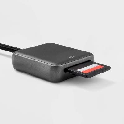 Experience seamless data transfer with the sleek Card Reader from heyday in Black. This USB-C to USB-A adapter effortlessly connects to your devices, allowing you to access and manage your SD and microSD cards with ease. Designed for easy portability, its lightweight construction lets you easily tuck it in a corner of your backpack and carry it around with ease. heyday: Let your style speak volumes.