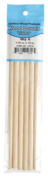 Cindoco Wood Dowels Natural Craft Wood Dowels, 7/16 In X 12 In (6 ct)