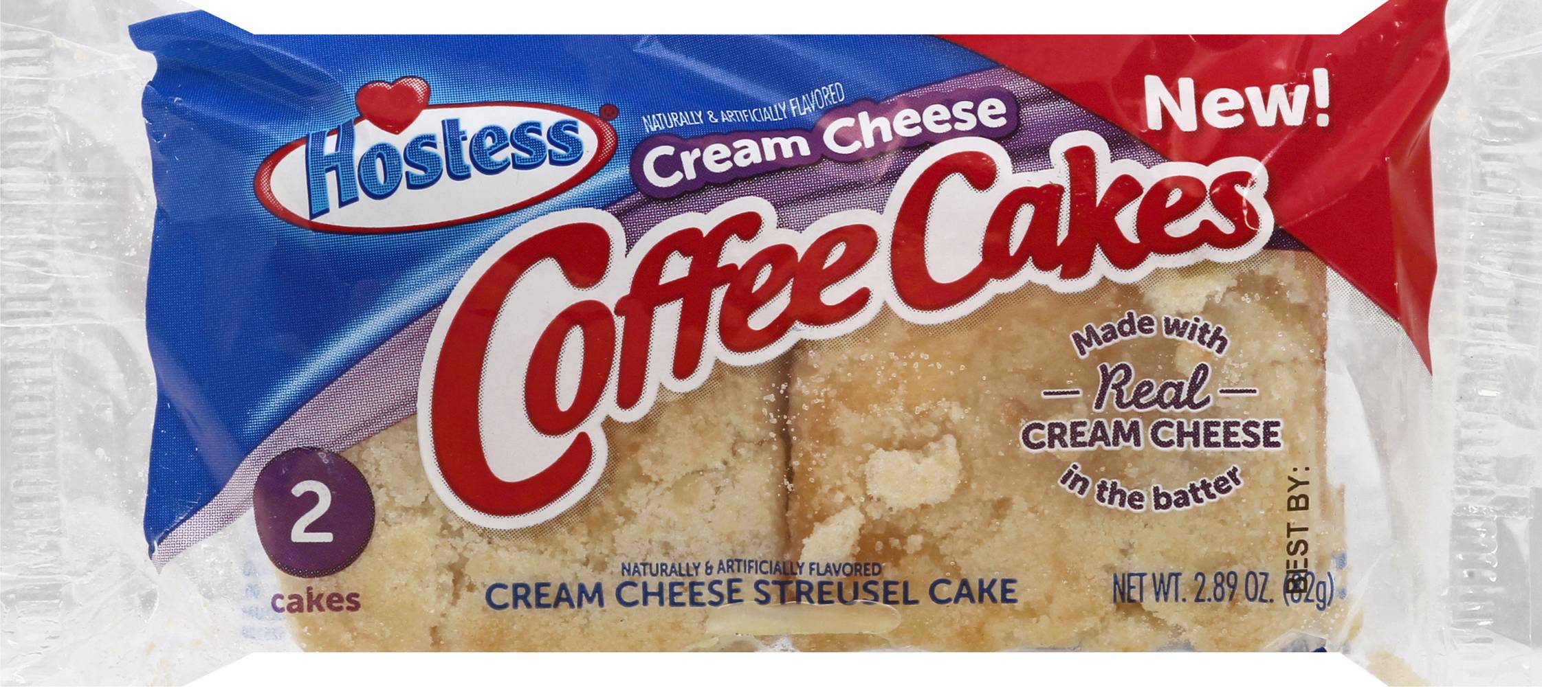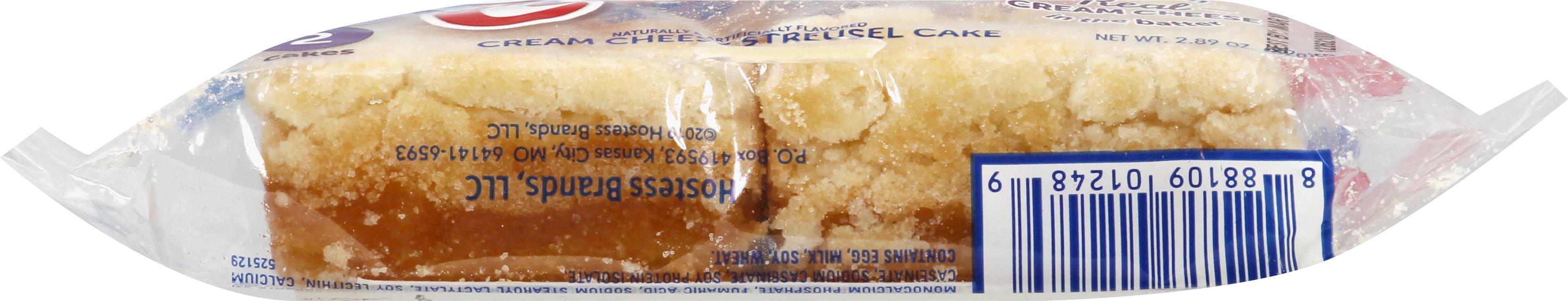 Cream cheese streusel cake. Naturally & artificially flavored. New! Made with real cream cheese in the batter. Hostess Quality Commitment: We welcome your comments and questions. 1-800-483-7253 or HostessCakes.com. Please have packaging available. HostessCakes.com. Facebook. Twitter. HOSTESS BRANDS, Kansas City, MO, 64141-6593, Ph: 800-483-7253