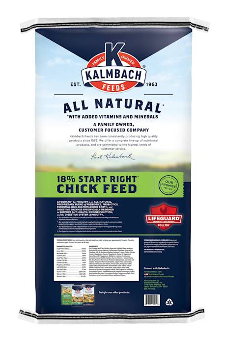 Your Kalmbach Feeds All Natural With Added Vitamins & Minerals 18% Start Right Chick Feed delivery options may vary depending on where you are in a city. Enter your address to browse Kalmbach Feeds All Natural With Added Vitamins & Minerals 18% Start Right Chick Feed delivery options near you.