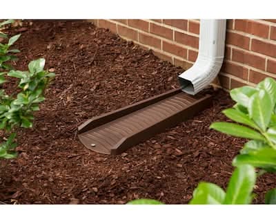 For an easy and convenient way to divert damaging rainwater away from your foundation, look no further than the Amerimax Splash Block. The unique cut out in the back of the extra long splash block allows it to fit underneath your downspout. This product also features a hole in the front of the splash block allowing it to be secured to the ground with a landscape spike (not included); thereby preventing the product from being impacted weather or wind. The durable resin construction is able to withstand the elements. • Color: Brown • Size: 24 in