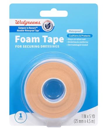Walgreens Waterproof Foam Tape is designed to cushion and protect sensitive skin while offering the flexibility to stretch and conform to various contours of the body. Its waterproof properties ensure durability and reliability in various conditions. This product is manufactured in China.