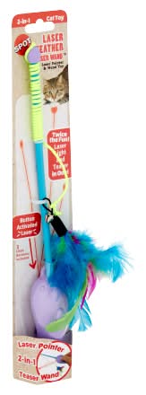 Spot 2-In-1 Laser & Feather Teaser Wand Cat Toy, Black,Blue,Green,Silver,Purple