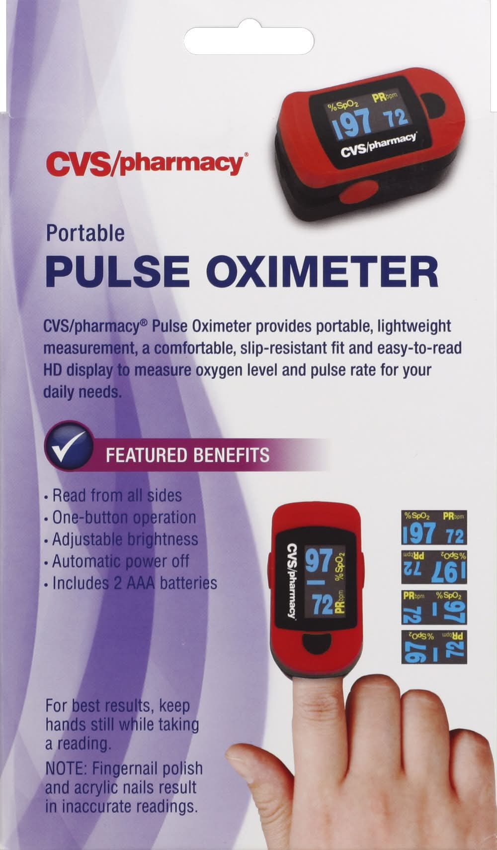 Your CVS Pharmacy Portable Pulse Oximeter delivery options may vary depending on where you are in a city. Enter your address to browse CVS Pharmacy Portable Pulse Oximeter delivery options near you.