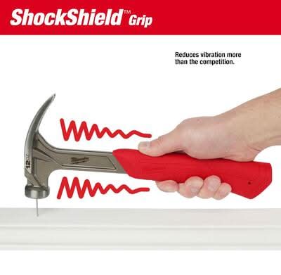The MILWAUKEE 12oz Smooth Face Hybrid Claw Finish Hammer is built for exceptional driving performance. Its SHOCKSHIELD Grip reduces vibration up to 10 times more than competitors, making it the most durable grip in the industry. The D-Faced head shape allows for better access in tight-spaced trim and finish applications, while the precision balanced design delivers strong and smooth striking power. The I-beam handle is designed to withstand bending, ensuring durability on the jobsite. With its hybrid claw, this hammer provides greater versatility and easier nail pulling applications.