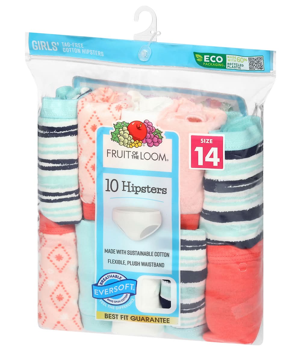 Fruit of the Loom Girls Tag Free Cotton Hipsters, 14, Assorted (10 ct)