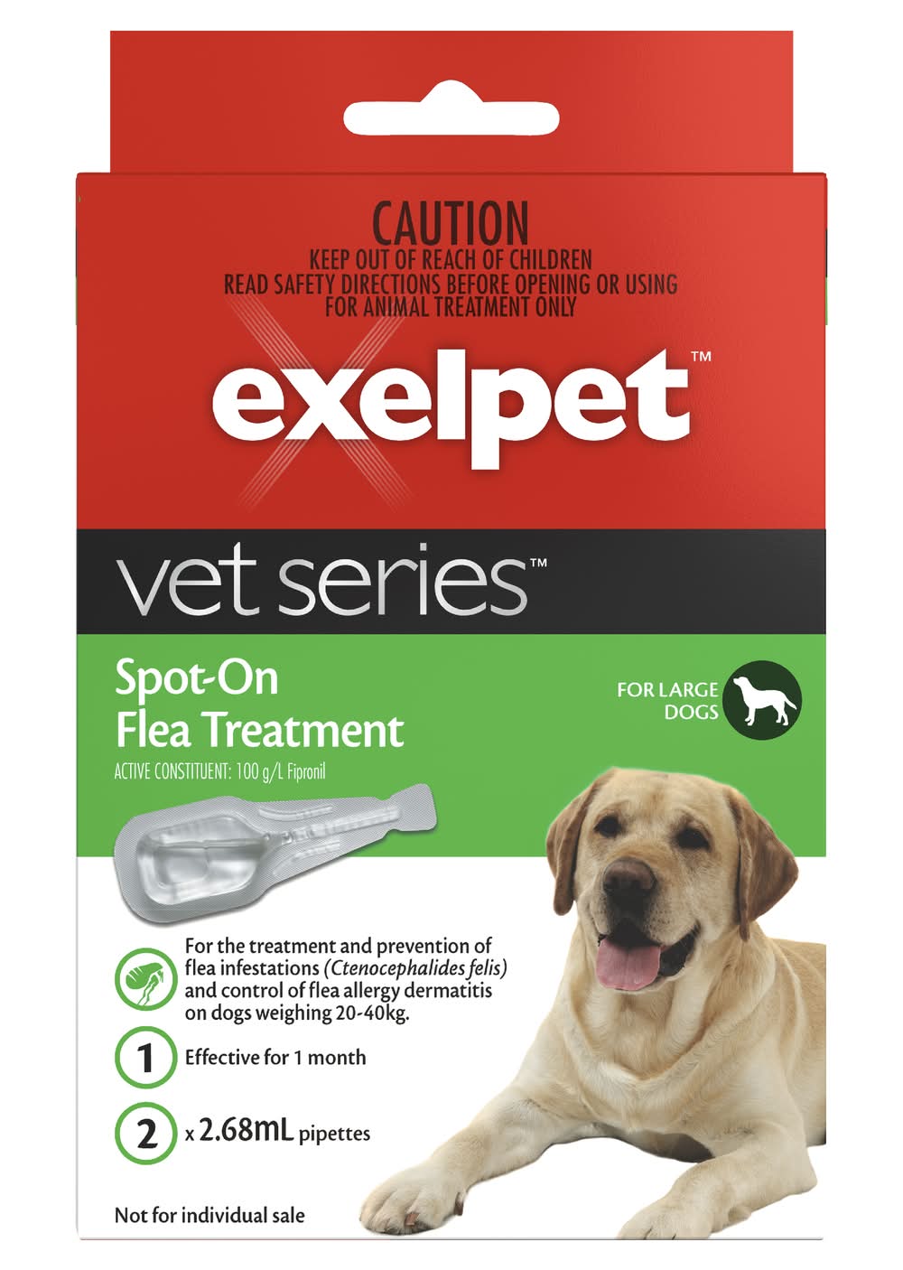 The EXELPET brand is a well-recognised and trusted pet health care brand that has been helping to protect Australian dogs and cats from parasites since 1972. Parasites such as fleas, intestinal worms and heartworm pose a challenge to most Australian pets. Your pet is an important part of your life and looking after their day to day health is a big priority. EXELPET products offer a comprehensive range of convenient and effective solutions designed to eliminate and prevent fleas, intestinal worms and heartworm. The key to effective flea control is starting early, before adult numbers build up. For effective control, we recommend using EXELPET flea prevention regularly, all year round. Some products will kill adult fleas, while some prevent the development of larvae or the production of viable flea eggs. EXELPET products provide a comprehensive range of solutions to help provide protection from all four stages of the flea lifecycle. Because most of a flea’s life is spent in the environment and not on your pet, good flea management programs also involve attending to your dog or cat’s environment. Washing bedding, blankets and pillows in hot water (>60C) as well as cleaning up or fencing off dusty or sandy areas outdoors where your pet spends time. Use for the treatment and prevention of flea infestations and control of flea allergy dermatitis on large dogs.