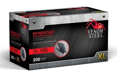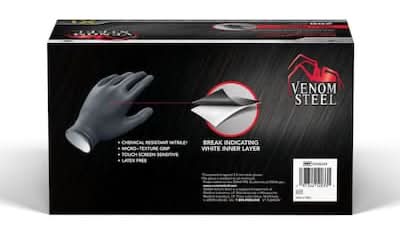 Venom Steel Resistant Industrial Powder Free Nitrile Gloves, XL, Black (200 ct)