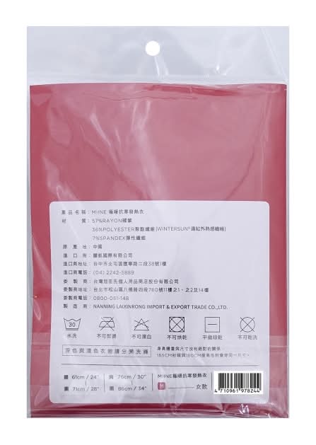 Miine 極暖抗寒發熱衣 - 女性, M