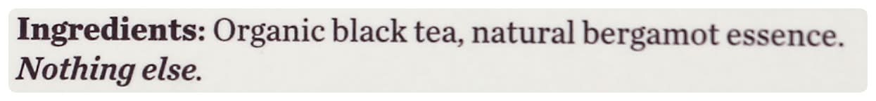 Organic Black Tea, Natural Bergamot Essence. Nothing Else