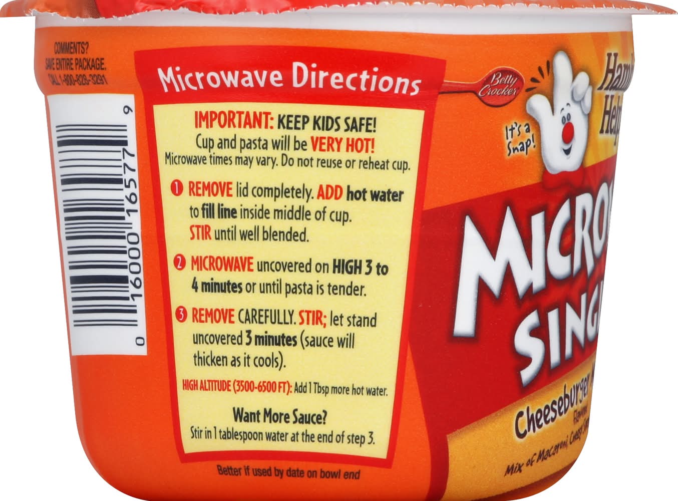 Microwave: Important: Keep kids safe! Cup and pasta will be very hot! Microwave times may vary. Do not reuse or reheat cup. 1. Remove lid completely. Add hot water to fill line inside middle of cup. Stir until well blended. 2. Microwave uncovered on High 3 to 4 minutes or until pasta is tender. 3. Remove carefully. Stir; let stand uncovered 3 minutes (sauce will thicken as it cools). High Altitude (3500-6500 ft): Add 1 tbsp more hot water. Want more sauce? Stir in 1 tablespoon water at the end of step 3.