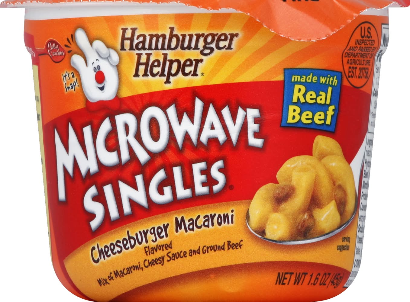 Hamburger Helper Real Beef Microwave Singles Cheeseburger Macaroni, Beef (1.6 oz)