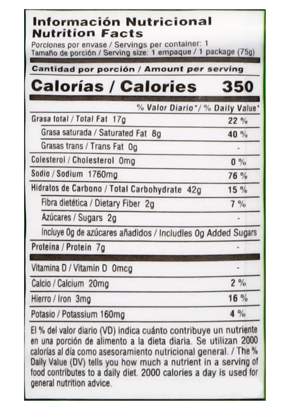 Noodles: Enriched Wheat Flour (Contains Vitamin B1, Vitamin B2, Vitamin B3, Folic Acid, Iron, Zinc), Palm Oil, Salt, Monosodium Glutamate (Flavor Enhancer), Sodium Carbonate (Acidity Regulator) and Sodium Polyphosphate (Stabilizer and Texturizer), Soup Powder: Salt, Dehydrated Carrot, Monosodium Glutamate (Flavor Enhancer), Corn and Peas Dried, Powder Beef Extract, Onion Powder, Garlic Powder, Soybean Powder, Sugar, Pepper, Disodium Inosinate and Disodium Guanylate (Flavor Enhancer), Dried Parsley and Chili Powder Contains: Gluten, Soybeans, Wheat, Corn, Fish, Crustacean Shellfish