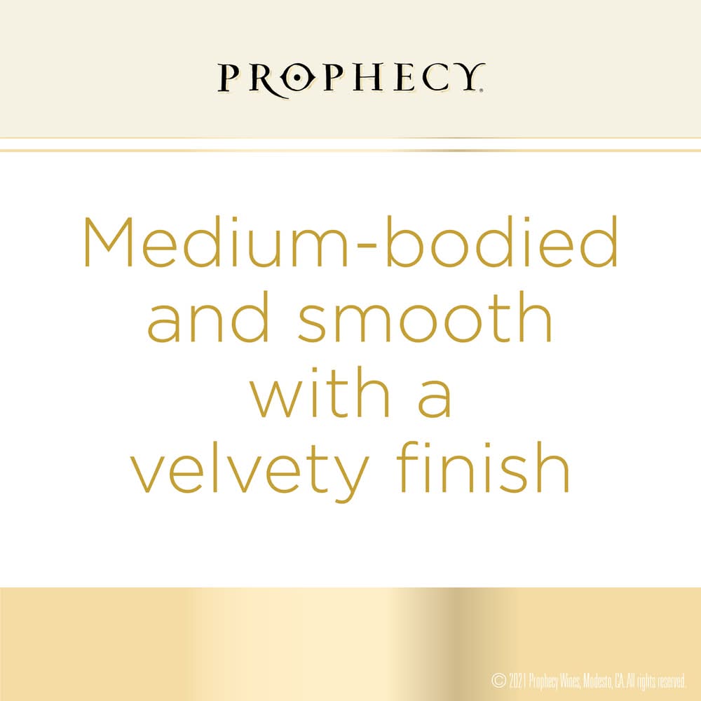 Prophecy Buttery Chardonnay wine showcases the rich bounty of California winegrowing. This white wine opens with delicate floral notes and quickly moves into a smooth and creamy mouthfeel that is nicely balanced by mouth-filling notes of stone fruit, lemon meringue, vanilla and buttercream. Best served chilled! • Alcohol by volume: 14.7% • Full bodied • Sweet-dry scale: dry • Suggested glassware: chardonnay glass • Prophecy Wines, San Luis Obispo & San Miguel, CA.