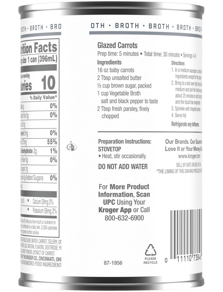 View a store’s business hours to see if it will be open late or around the time you’d like to order Kroger Vegetable Broth.