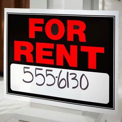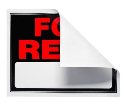 Draw the attention of prospective renters with this For Rent Sign. The bright red text on a black background is easy to see from a distance, ensuring that no one misses it. A designated customization space lets you add important details. Made of weatherproof vinyl plastic, it has a fade-resistant finish. Mounting hardware is sold separately.
